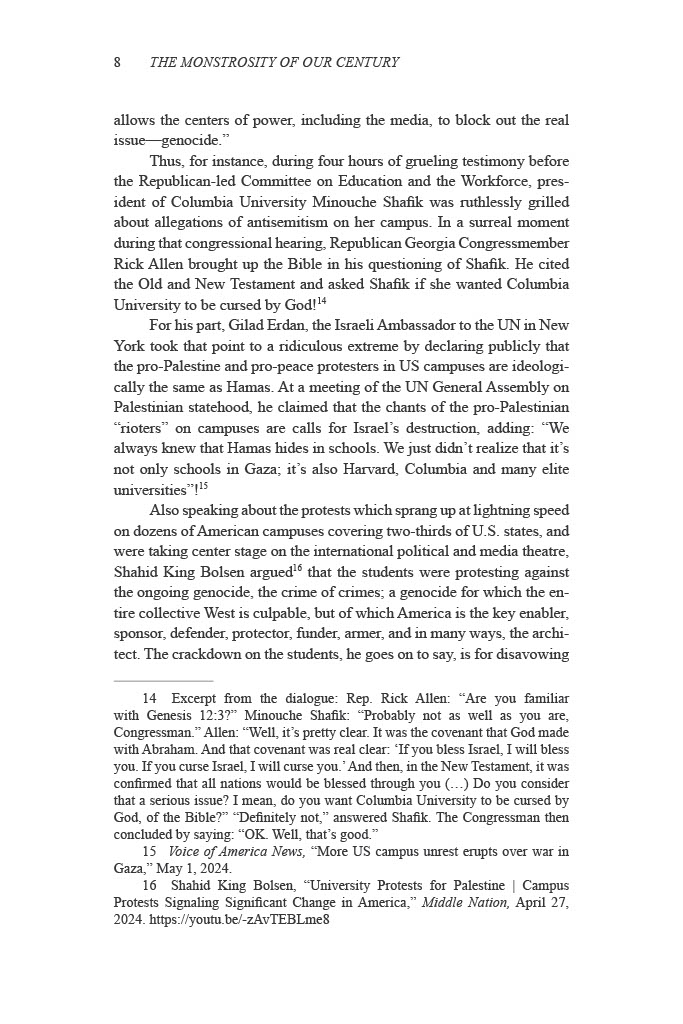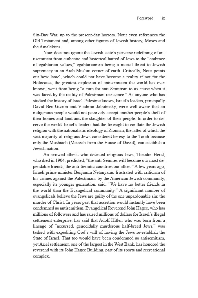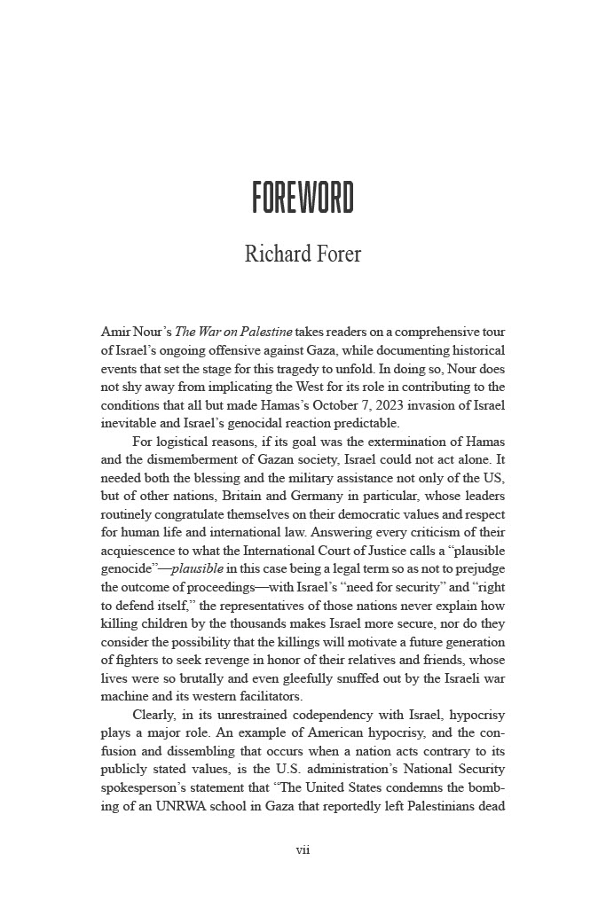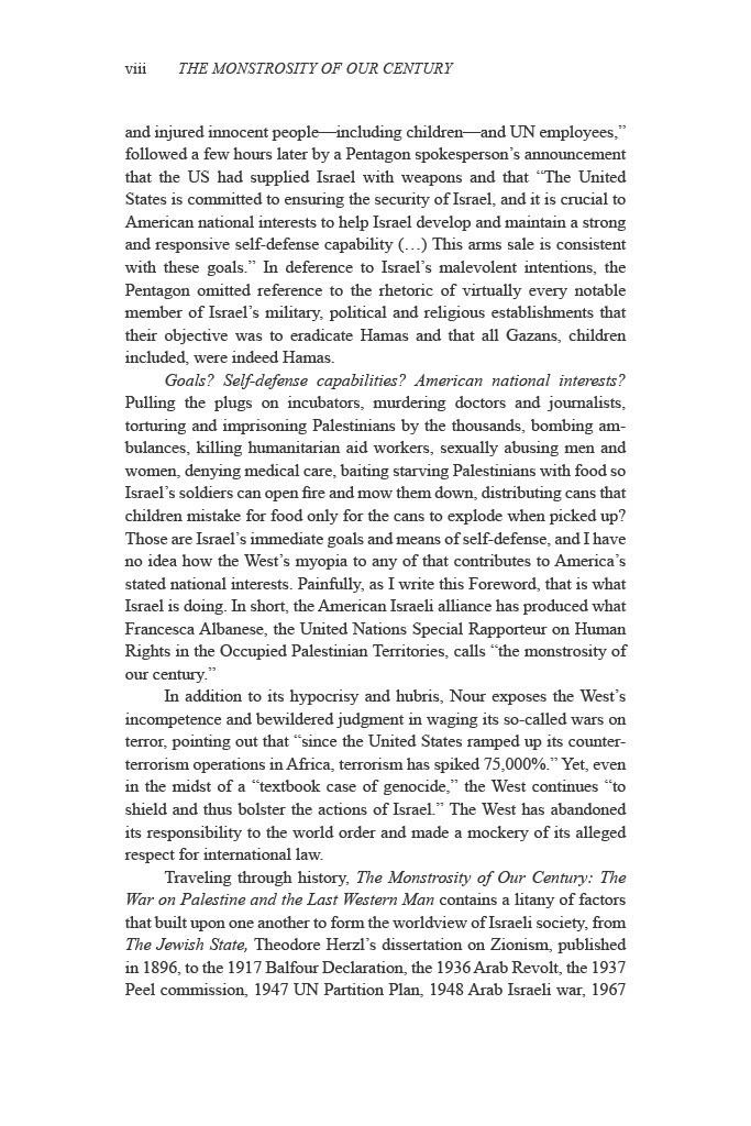 Addressing the crimes of starvation and genocide that UN Special Rapporteur on Human Rights in the Occupied Palestinian Territories Francesca Albanese termed “the monstrosity of our century,” Nour documents the historical events that set the stage for this tragedy, implicating the West for its decisive contribution to conditions of apartheid and the open-air prison that all but made the October 7th, 2023, attack on Israel inevitable and Israel’s genocidal reaction predictable.