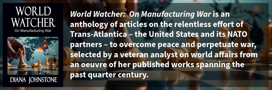 World Watcher: On Manufacturing War is an anthology of articles on the relentless effort of Trans-Atlantica – the United States and its NATO partners – to overcome peace and perpetuate war, selected by a veteran analyst on world affairs from an oeuvre of her published works spanning the past quarter century.