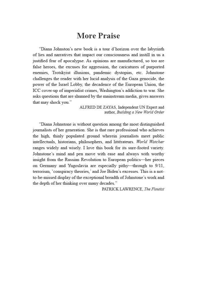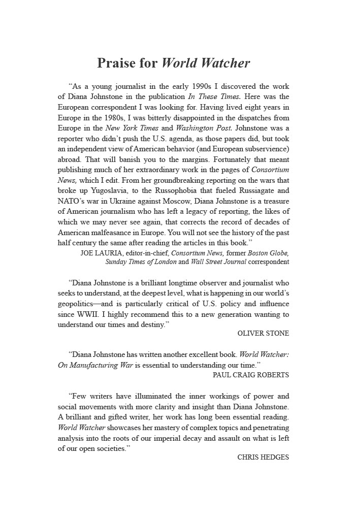 Diana Johnstone demonstrates how the end of the Cold War, rather than bringing about world peace, made it clear that “the communist threat” had above all served as a pretext for aggressive militarization Subsequent pretexts focusing on human rights violations, “authoritarianism” and imaginary scenarios were to follow. A new age of endless war has been deliberately manufactured by the dominating powers of finance, mass media, entrenched institutions and opportunistic politicians.