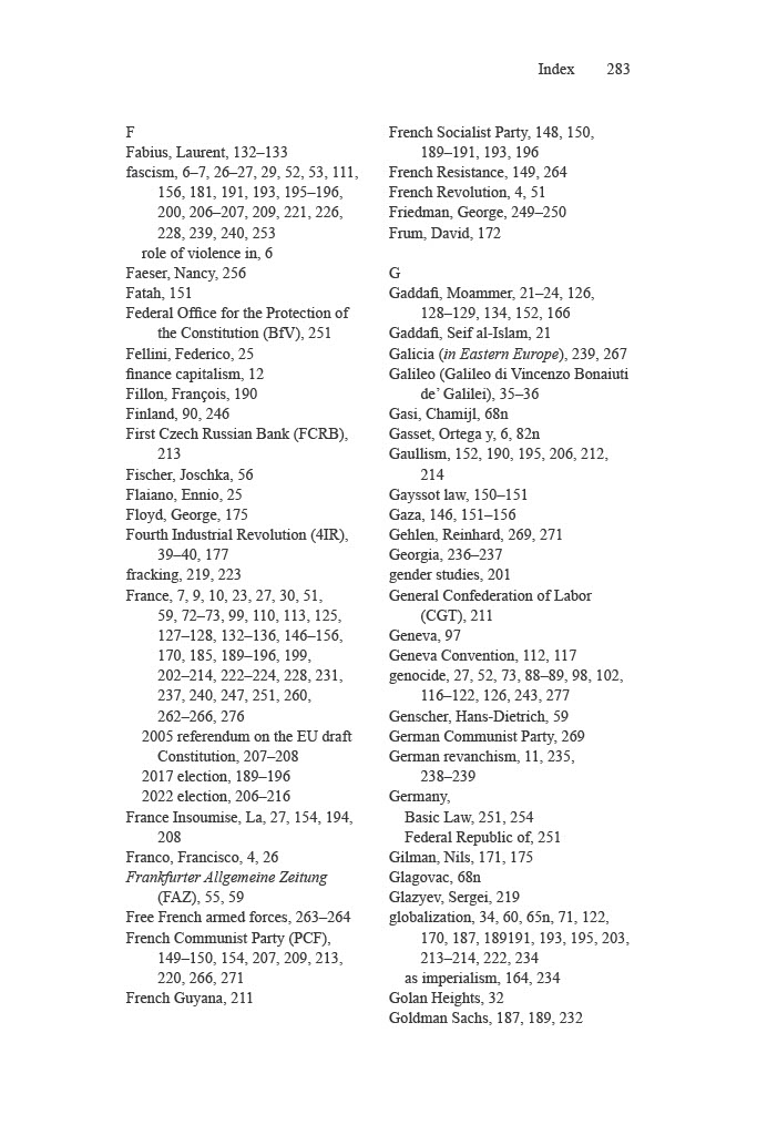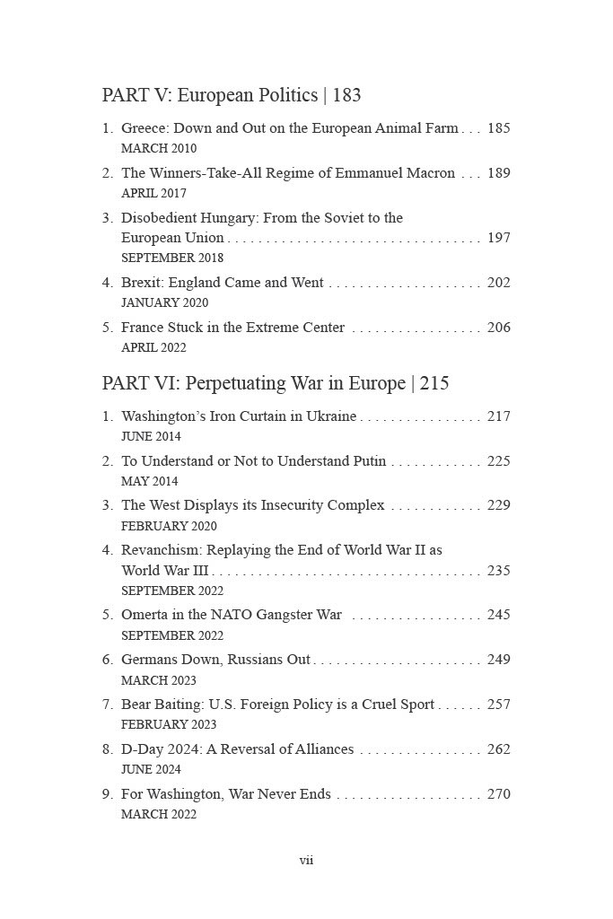 - the degraded political systems of the United States and its European dependencies as governance is reduced to support for financial capitalism, the military industry and war, and